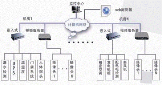 ??????嵌入式服務器:包括嵌入式linux服務器和嵌入式視頻服務器。嵌入式linux服務器對分支機房環境設備進行實時監控;嵌入式視頻服務器自帶硬盤 ,實現對機房內部的攝像頭進行集中監控。